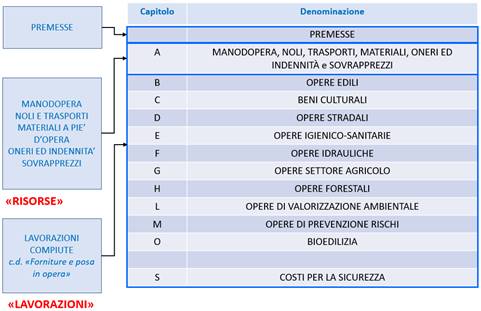 per analogia tipologica, lavorazione, peso e costo dei materiali, dei capitoli